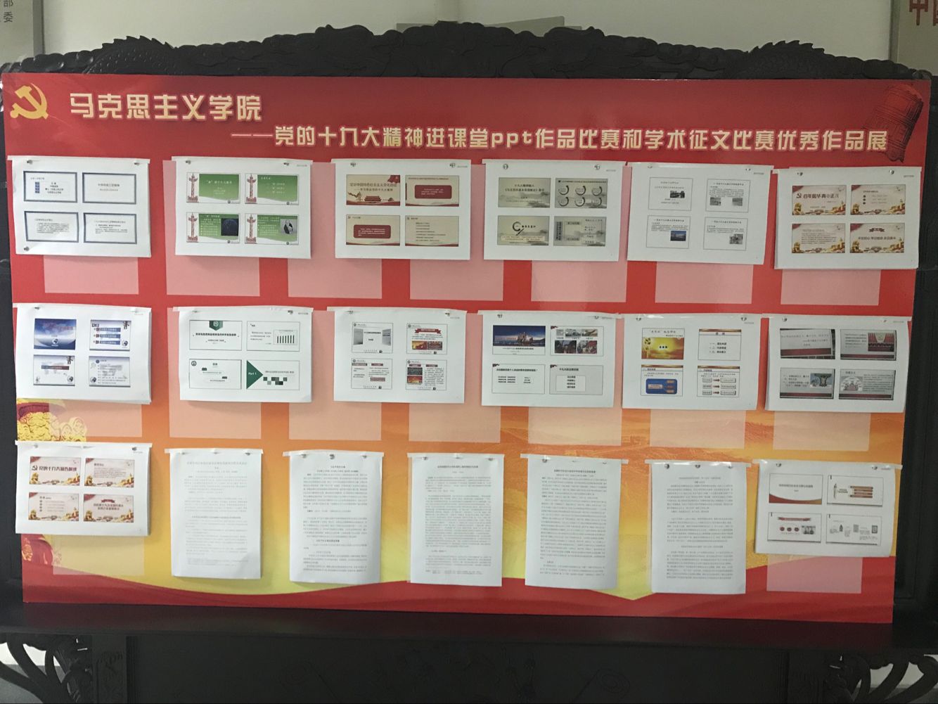 为深入学习贯彻党的十九大精神,推进十九大精神“进课堂、进教材、进员工头脑”工作,引导广大师生为实现党的十九大提出的宏伟目标而努力奋斗,2017年11月28日——12月18日,马克思主义公司党委面向广大师生举办了“党的十九大精神进课堂”PPT作品比赛和学习党的十九大精神学术征文比赛。