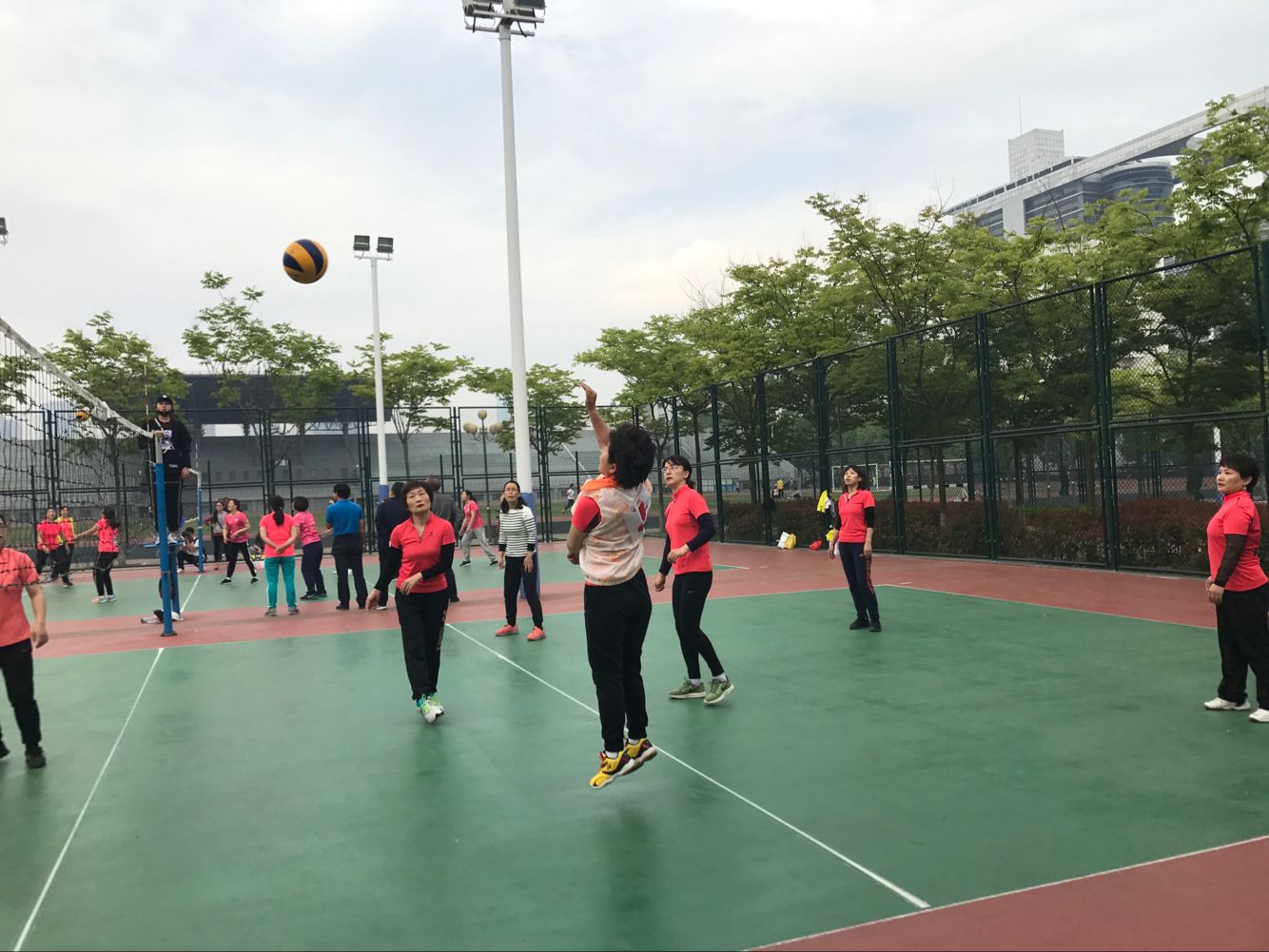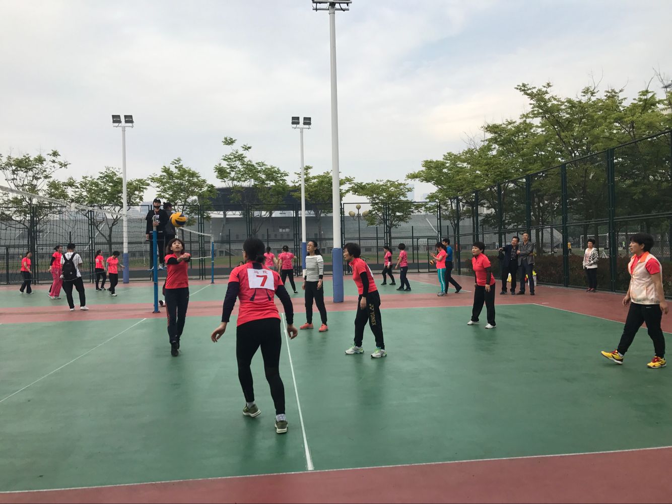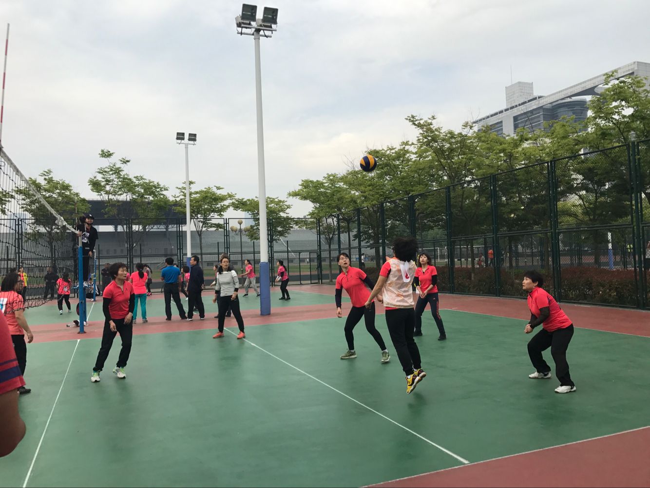 5月24日下午,马院女排对阵计通女排。计通女排是公司传统强队,曾经创造过辉煌成绩。在双方女排的交手历史上,我们从来没有赢过。今年我们组建了马院历史上相对齐整的女排队伍,有张晓青和岳金霞两位重炮手,景艳菊主二传,牛继玲接应二传,于翠萍副攻,又有解晓燕新生力量的加盟。比赛时间已经到了,解晓燕老师才刚刚下课,匆忙赶到球场,没有热身没有练球,直接开始了紧张的比赛。比赛伊始,面对我们稳稳的一传和强力扣球,对方很不适应。很快我们就以大比分2:0领先。第三局比赛开始,我们一路领先,但是随着体力的消耗,我们开始慌乱,被对手超越并最终以23:25遗憾输掉。第四局开始,计通女排一路领先,他们的员工啦啦队在球场上更是热情高涨,加油叫好声不断,这不仅没有给我们任何压力,反而激发了我们的斗志,我们每打一个好球,所有队员齐声叫好,自己给自己鼓励。毕竟对手强大,她们以21:17领先。我们叫了暂停,张晓青的重扣结束了她们的得分势头。我们一路追赶,并且最终以25:23赢下了关键的第四局。