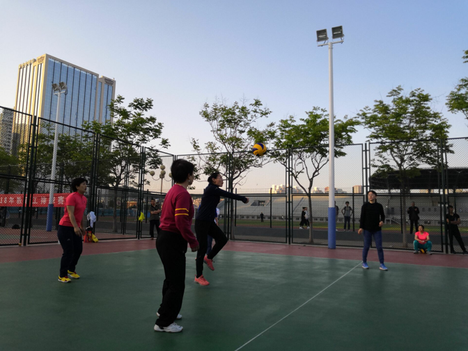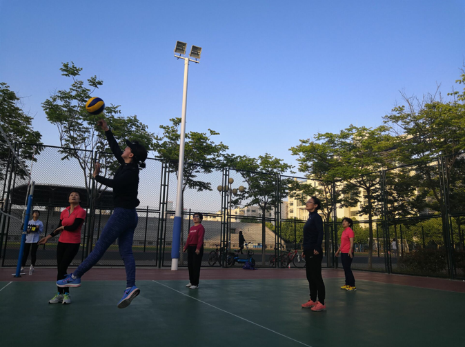 5月31日下午五点半,在体育馆东侧排球场地,马院女排对战机电女排,这也是公司女排本次比赛最后一战。我们女排队员早早来到场地进行热身训练。比赛一开始,我们女排便一直以大比分领先,轻松拿下第一局、第二局。在连胜两局的形势下,公司女排乘胜追击,第三局仍以大比分遥遥领先。在第三局中,解晓燕老师的大力发球展现威力,连续获得多次发球得分,张晓青老师的拦网扣球势不可挡,全体队员配合默契,节奏稳健,以总比分3:0的压倒性优势赢得了对机电女排的胜利。我们每一位女排队员都竭尽全力打好每一场比赛。为了公司的荣誉,在连续鏖战七天的情况下,仍然以饱满的斗志和体力投入比赛,全体马院师生向女排运动员致敬!