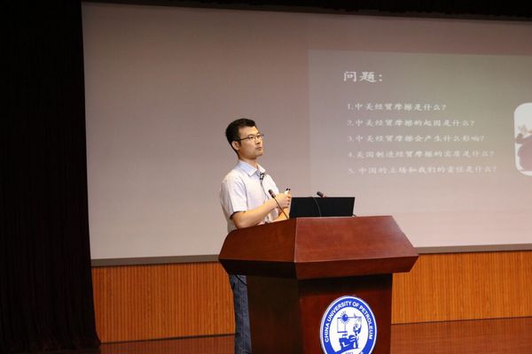专题教学由公司sunbet青年教师、毕业于吉林大学的郎帅博士主讲,主题为“中美经贸摩擦:起因、实质与中国的立场”。郎帅博士以专业的视角深入浅出地分析了中美贸易战的背景、现状及未来发展趋向,当谈到老员工在这场贸易战中应该做什么时,他指出我们应坚定“四个自信”、强化“四个意识”、正确分析和解读经贸摩擦、不信谣不造谣不传谣。郎帅博士深厚精湛的专业功底、幽默风趣的讲课风格,赢得了现场频频的掌声,让同学们深切地体验到了“形势与政策”课程的魅力。专题教学结束后,来自理公司应用物理专业的2018级本科新生李骁同学由衷感叹道:“这门课程对我来说真的很有帮助,是一扇指导我们正确认识国内外大势的‘窗户’,我会珍惜公司的宝贵教学资源,在这门课程中不断提升自己。”