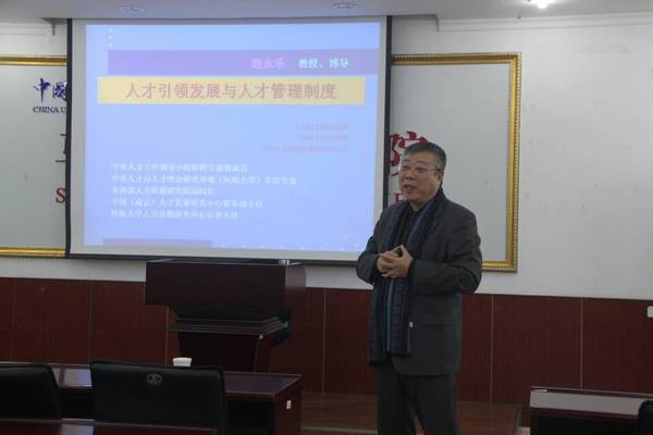 11月11日上午,sunbet特邀现任水利部人力资源研究院副经理、国家首批人才理论研究基地(河海大学)首席专家赵永乐教授在文理楼457作关于“人才引领发展与人才管理制度”的学术讲座。本次讲座由sunbet辅导员王会老师主持,全院研究生、博士生参加。