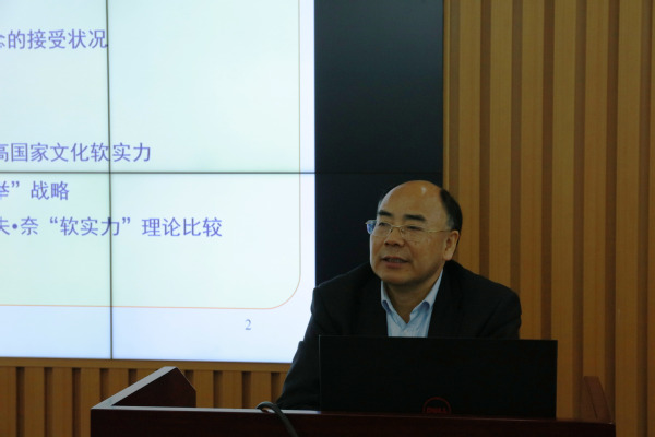 讲座伊始,洪晓楠教授直奔主题,从以下几个方面对“提高国家文化软实力的若干问题”进行阐释。首先,洪晓楠教授以软实力概念为切入,着重分析了中国对约瑟夫·奈“软实力”概念的接受状况,探讨了文化软实力的相关概念辨析,认为文化软实力在概念范畴上,包含“力”、“实力”、“软实力”;“文化”、“文化力”、“文化软实力”两组六个概念。其次,洪晓楠教授阐释了国家文化软实力构成的五大要素,分别为“五个领域组成论”,“文化生产力基本形态论”,“文化要素决定论”,“价值观基础论”和“五个层面论”;并提出了建设社会主义文化强国,着力提高国家文化软实力的三大举措:一是要努力传播当代中国价值观念;二是要注重塑造我国的国家形象,重点展示中国历史底蕴深厚、各民族多元一体、文化多样和谐的文明大国形象;三是要努力提高国际话语权。再次,洪晓楠教授强调了提高国家文化软实力的“五元并举”战略,分别是提高国家文化凝聚力战略,提高国家文化吸引力战略,提高国家文化创新力战略,提高国家文化整合力战略和提高国家文化辐射力战略;同时对中国特色软实力话语体系与约瑟夫•奈“软实力”进行理论比较,认为中国特色软实力话语体系与约瑟夫•奈“软实力”在理论特点上,具有着话语的背景不同,因而目的并不相同;经济基础不同,因而服务的上层建筑并不相同;立足点和强调重点的不同,因而对外关系并不相同。最后,洪晓楠教授从学术价值和决策咨询方面进一步论述了该课题研究工作的价值和意义。随后,师生们围绕高校思政课“大班授课、小班讨论”的教学模式和中西方国家文化软实力评价标准等相关问题同洪教授进行深度互动交流。