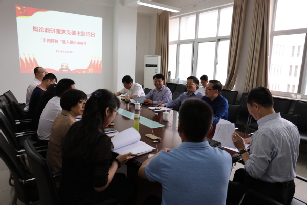 王勇书记对本次主题党日活动做了点评。王勇书记强调指出,将“五四精神融入概论课教学”作为党日活动的主题,很有必要,也很有现实意义。他认为概论教研室老师们的交流发言,内容丰富,各具特色,明确了五四精神融入概论课教学的重点、方式和途径,有利于老员工更好地把握习近平总书记关于五四运动与五四精神重要论述的精髓要义和实践要求。最后,王勇书记希望思想政治理论课教师,认清自己在立德树人、培根铸魂中的责任与使命,争做“四有”好老师,为培育中国特色社会主义的合格建设者和可靠接班人做出应有的贡献。