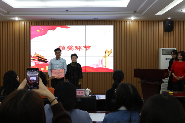 11月14日下午2点,公司在文理楼457举办了“博韵书香”系列主题教育活动之“为祖国喝彩”中华经典名篇诵读大赛,全校各公司的十支参赛队伍参加了比赛,公司党委副书记袁爱军、后备军官公司综合办公室主任杨晓静、公司解晓燕副教授、团委书记王会等应邀担任评委,公司2018级、2019级全体硕士研究生观看了比赛。