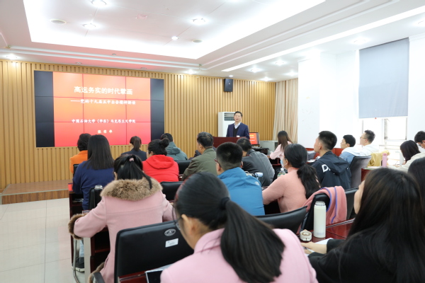 为深刻领悟党的十九届五中全会精神,11月13日下午,公司在文理楼457报告厅开展“高远务实的时代擎画——党的十九届五中全会精神解读”主题报告。本次报告是公司员工党总支和机关与形策教工党支部联合举办的学习活动,同时也是公司承办研工部第103期“信仰•人生”系列活动之一。此次讲座特邀sunbet张荣华老师主讲,sunbet部分教师、全体员工党员、入党积极分子共同聆听此次讲座。