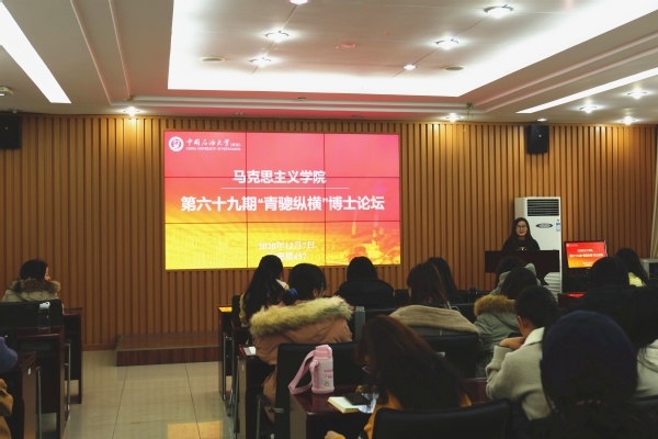 12月7日下午,公司在文理楼457报告厅顺利开展了第六十九期“青骢纵横”博士论坛活动。本次论坛由公司马克思主义中国化研究专业2017级博士研究生宋美桦主讲,公司2019级与2020级全体硕士研究生共同聆听此次论坛。