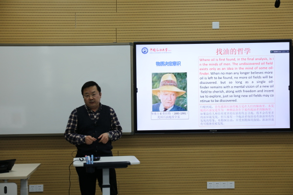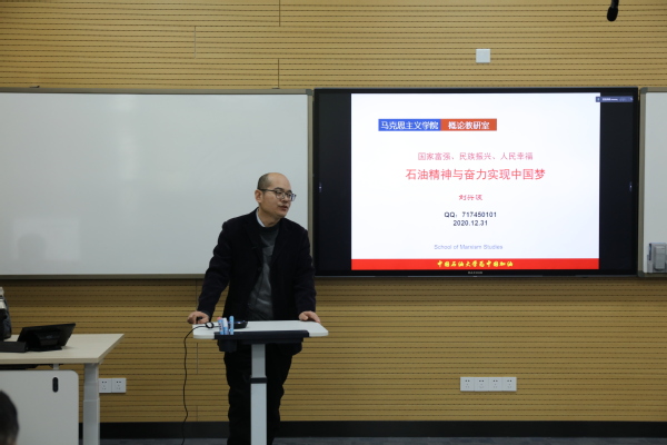 辞旧迎新之际,公司于南堂411教室隆重举行“石油精神融入思政课教学展示”活动。国家一级作家、《石油精神》主编周洪成先生作为特邀嘉宾线上参与本次活动。国家一流课程《中外石油文化》主持人、石油工程公司张卫东教授,党委教师工作部、教师教学发展中心副主任张庆荣,以及公司经理王建军、党委书记司江伟、教学督导员江华、陈龙娟、孙伟老师担任评委。本次活动由岳金霞副经理主持,部分石油、石化高校教师在线观摩。