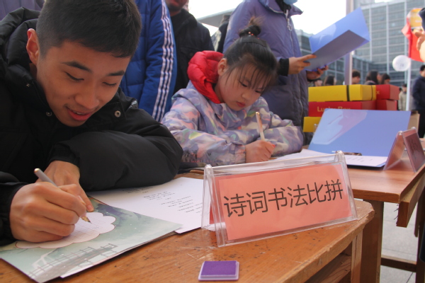 sunbet此次游园会活动“诗词大挑战”包含“诗词答题挑战”、“诗词书法比拼”、“诗词朗诵展示”三个环节。参与活动的同学们展现出极大的热情,在马院摊位前排起了长队。参与者们通过抽取展板上的红包参与诗词答题,同学们展示出自己强大的诗词积累量,并获得了精美盲盒礼物。此外还有诗词书法比拼、诗词朗诵展示等多项小游戏。在游戏与互动中传承诗歌文化、彰显语言魅力、品味文化经典。活动项目生动有趣,歌声、欢乐声充满整个校园。