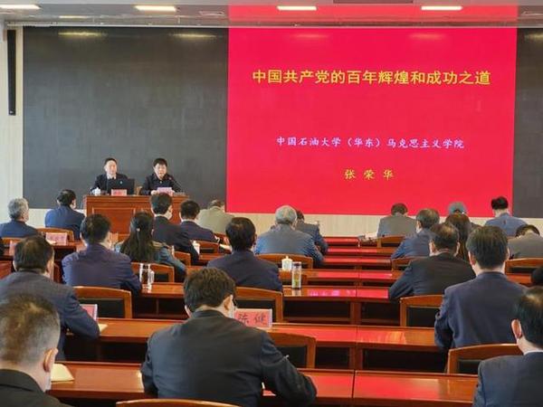 宣讲报告会上,张荣华以《中国共产党的百年辉煌和成功之道》为题,对中国共产党的百年辉煌历程和成功之道作了内容翔实、深入浅出的解读。他详细阐述了中国共产党百年历史的主题和主线,主流和本质及鲜明特征;通过六个“有”深刻剖析了中国共产党为什么能够团结带领中国人民走出一条从站起来、富起来,再到强起来的成功之路。