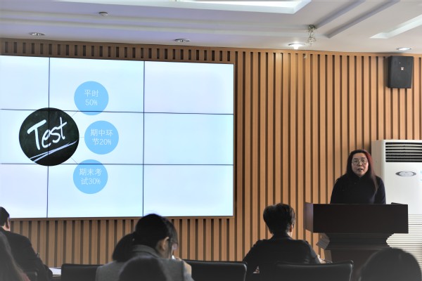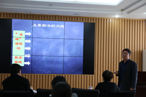 此次教师座谈会以公司走在教研教改前列的《马克思主义基本原理》课程为例,由原理教研室的4位教师代表对其教学模式中的教学设计、课程实施与过程考核分别进行介绍,并在情况汇报完毕后对公司其他老师的质询做出回应。