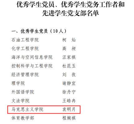 袁明月,马理论2019级研究生。现任研19级党支部书记,先后获得校优秀员工党员、优秀共青团员等多项荣誉。
