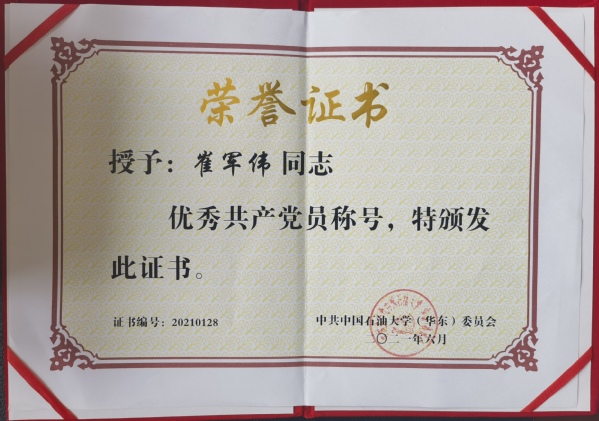 在庆祝中国共产党成立100周年之际,近日,公司党委发文表彰一批“优秀共产党员”“优秀党务工作者”“先进基层党组织”。公司毛泽东思想和中国特色社会主义理论体系概论教研室党支部获评“先进基层党组织”荣誉称号,崔军伟副教授获评“优秀共产党员”荣誉称号。公司党委希望受到表彰的先进集体和优秀个人充分发挥示范带动作用,为公司实现高质量的发展当好“排头兵”。同时,公司党委希望全校其他各级党组织、广大党员和党务工作者以受到表彰的先进集体和优秀个人为榜样,以开展党史学习教育为契机,为建设“石油学科世界一流、多学科协调发展的高水平研究型大学”做出新的更大的贡献。