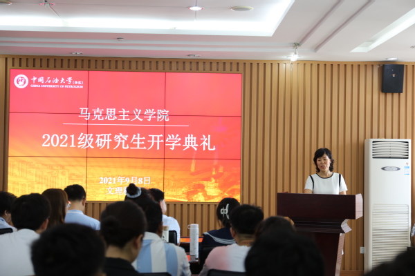 2021级硕士新生代表张淑琪进行发言,她从自身体悟出发,展望了研究生生涯“弘扬石大精神;脚踏实地、志存高远;修身立德,潜心向学;增强体魄”等愿景。2020级硕士刘皓楠作为在校生代表,鼓励新生入学之后树立明确的目标,并对学术和生活饱含热情,度过充实美好的研究生生活。汪怀君教授作为教师代表,作题为“让优秀成为一种习惯”的发言,她向新生提出几点期许:做事要持之以恒;要善于发现问题,捕捉新思路;生活中与人为善,多汲取团体的力量。张瑞涛经理作题为“强国有我:sunbet研究生做好12345”的讲话,从“一心、二备、三勤、四和、五得”角度对新生提出了殷切期望,鼓励新生明确目标、坚定信念、勤学笃志,成为知行合一的时代新人。