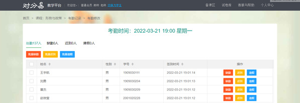 形策课与其他课程相比,按轮授课,员工不固定,课堂具有流动性。线上教学任务下达后,形策课各位老师一起找方案、做预案,与各班班长、团支部书记和学习委员共同组建“教学共同体”,利用线上平台第一时间与同学们建立了联系,确保将课程信息和授课方式通知到每一位同学,有效进行课堂管控,将疫情防控落到实处,使课堂教学平稳运行。