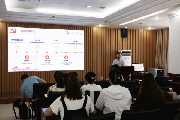 会议伊始,师生共同观看了袁爱军老师以《青年的责任与担当》为题的微党课,讲述了周辉老师赴内蒙担任驻村第一书记期间,通过种种举措对当地扶贫攻坚做出重要贡献的感人事迹。接着,公司经理张瑞涛老师结合《新时代的中国青年》白皮书的重要内容,鼓励同学们以周书记为榜样,走进社会,服务基层,把自己的学术成果写在乡村振兴战略的宽广大地上。