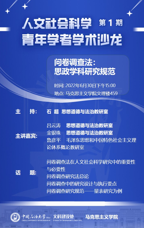 2022年度第一期人文社会科学青年学者学术沙龙活动将于6月30日(本周四)举行,欢迎大家积极参与,现将有关事项通知如下: