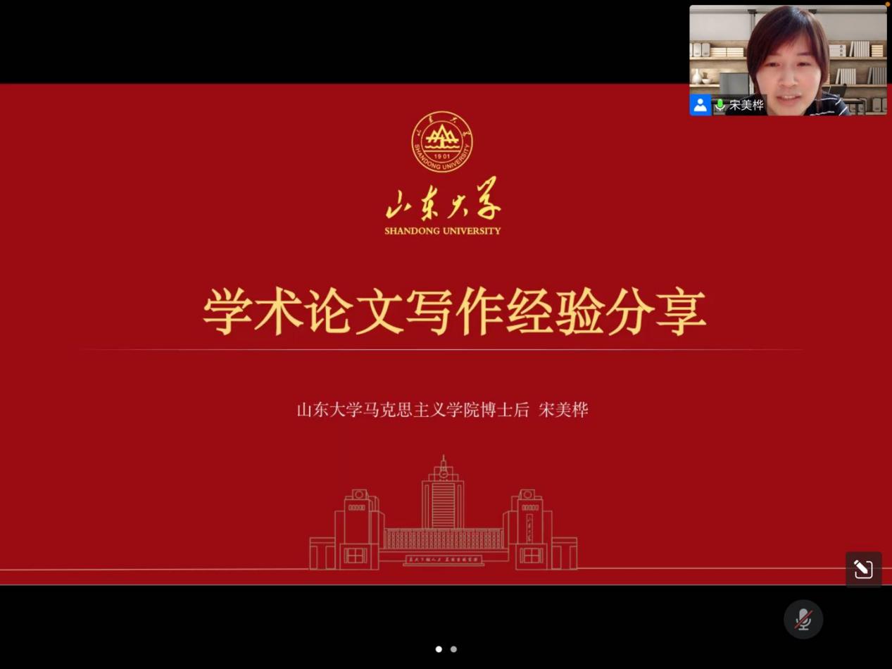 为使同学们更好地掌握论文写作方法与技巧,提高学术论文的质量和水平,7月4日下午,马克思主义中国化研究方向召开线上读书分享会。本期读书会邀请到山东大学sunbet博士后宋美桦老师作题为“如何写一篇优秀的学术论文”的经验分享。本次读书会由班主任毕松老师主持,全体2021级马克思主义中国化方向硕士研究生参加。