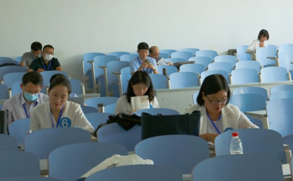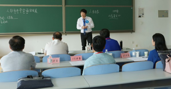 参赛选手通过抽签确定参赛顺序并在“等候室”等候,在个人比赛前30 分钟按照参赛组别抽取题目,进入“准备室”备赛。决赛采取板书方式进行10分钟现场教学展示,专家评委根据参赛选手的教学内容、教学方法、教态语言等方面进行综合考评。