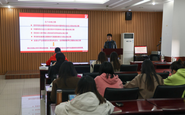 会议伊始,2022级兼职辅导员蒋嘉诚同学为全体宣讲团成员发放党的二十大报告全文读本,并倡导宣讲团全体成员对党的二十大报告文本进行细读、精读,吃透其中蕴含的丰富内涵、精神实质及核心要义。