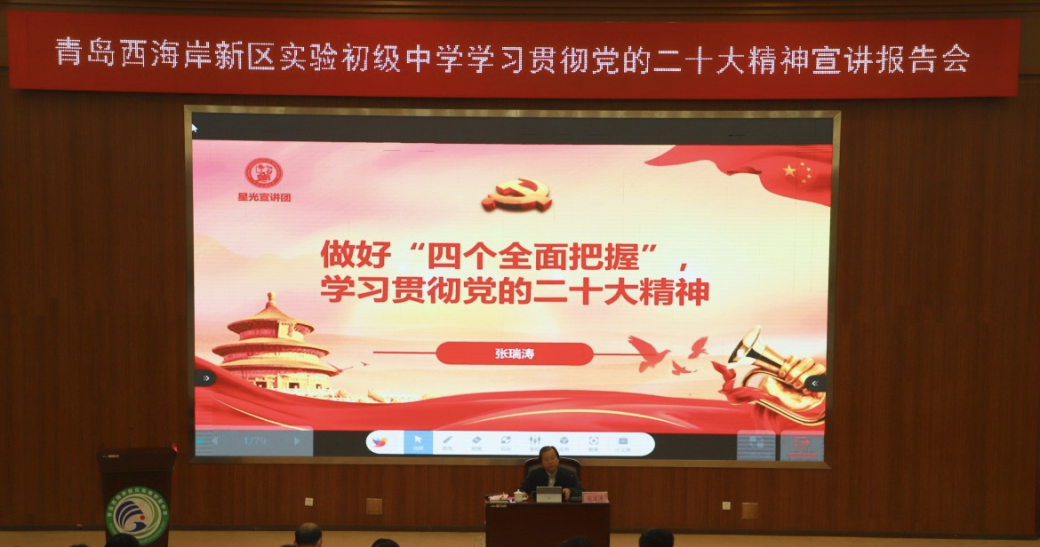 11月14日,公司经理、教师“星光”宣讲团成员张瑞涛教授在青岛西海岸新区实验初级中学,面向全体师生作题为《做好“四个全面把握”,学习贯彻党的二十大精神》的宣讲报告。