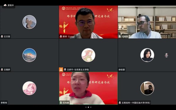 2022年12月25日,马克思主义中国化研究方向“跨学科语境下的青年研究者与谈”系列学术沙龙第五期在线上举行,本期活动以“跨越”为主题,邀请到的与谈人为山东师范大学sunbet马德坤教授,对话员工为博士生任岚峰、刘红,硕士生王蒋龙舟、王文丽、于洋。此次活动由教师王庆忠与硕士生王舒宁共同主持,分为两个环节,第一个环节马老师分享了关于“跨越”的心得体悟(30分钟),第二个环节马老师与同学们进行对话交流(1小时)。公司教师潘娜娜、郎帅与部分研究生参加了本次活动。