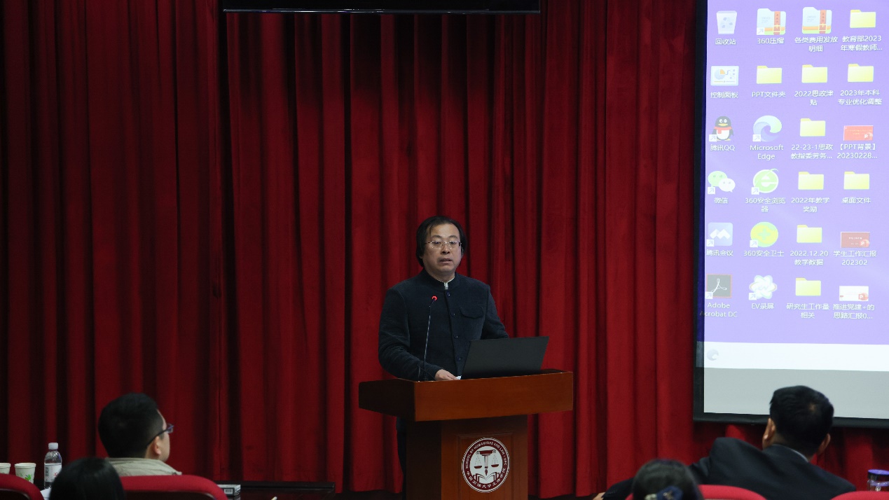 在会议第二阶段,按照公司新学期工作会议精神的要求和公司2023年工作要点,公司全面总结2022年度的工作并安排部署2023年重点工作。公司副经理宋海儆、崔军伟及党委副书记、副经理袁爱军,分别就分管的教学、科研和员工工作进行简要总结并部署新学期工作。党委书记司江伟就打造公司党建工作的特色进行了部署,强调要不断完善公司“党建+”工作体系,以高质量的党建工作保障公司高质量发展。经理张瑞涛就新学期岗位的考核续聘、思政课教师专项津贴、教学科研奖励等工作进行说明,希望全院教职工树立忧患意识,拥有更高的政治站位和更高的学术水平,以高质量的思政教学、科研成果落实立德树人的根本任务,切实推进公司内涵发展、特色发展、高质量发展。