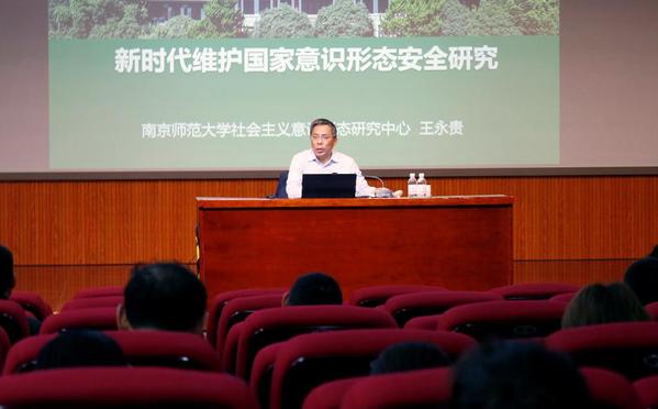 面对意识形态领域的安全态势,王永贵从政治能力、思维能力、协同能力和创新能力四个方面系统讲解了新时代维护国家意识形态安全总体能力的提升路径,并强调应从体系化建构、常态化执行、长效化落实中提升社会主义意识形态的凝聚力和引领力。