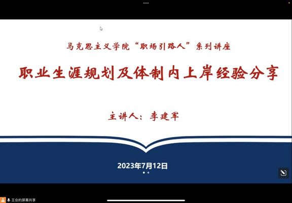 为进一步提升公司研究生的职业生涯规划意识和就业竞争力,引导研究生树立正确的择业观和就业观,7月12日下午,公司团委通过线上形式举办“职场引路人”系列讲座之职业生涯规划及体制内上岸经验分享。本次讲座邀请到2023届博士毕业生李建军为在校研究生做经验分享,向在校研究生们传道解惑。讲座由公司团委书记王会主持,2021级、2022级、2023级硕士研究生参加。