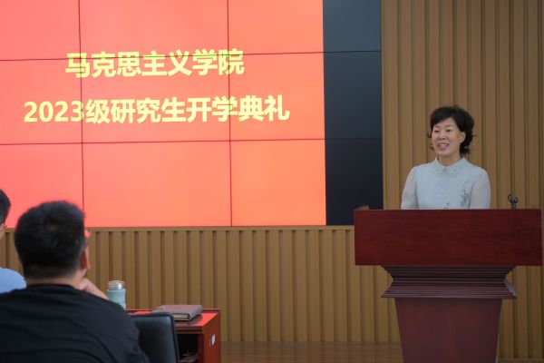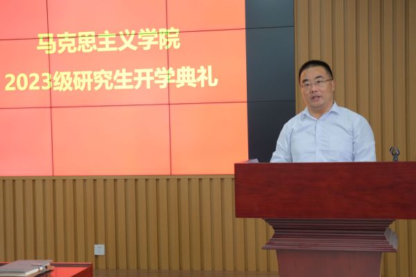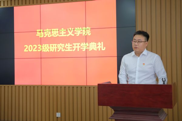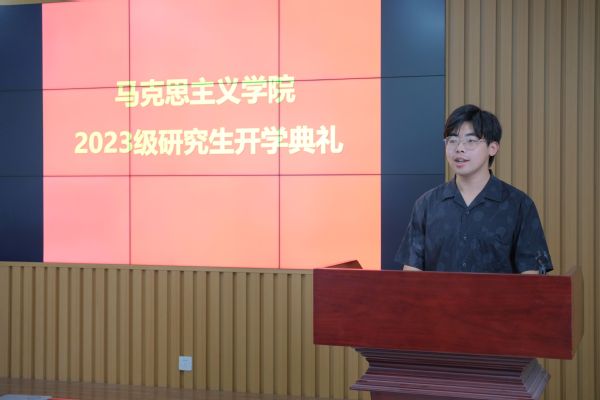2023级博士研究生李璟睿作为新生代表发言,倡导青年学子应秉持严谨认真的科学态度、务实求真的学术精神,在追求真理的路上矢志不渝、沉心静气。在校生代表2022级硕士研究生刘泽翱表示新生站在公司发展新起点上,要坚定理想信念,以阅读经典品味真理之甜,知行合一、以行求知。王庆忠副教授作为教师代表对新生提出殷切期望,鼓励新生相信自我、敢于突破、见贤思齐,把自我价值和社会价值结合起来,踔厉奋发,做新时代的马院人。