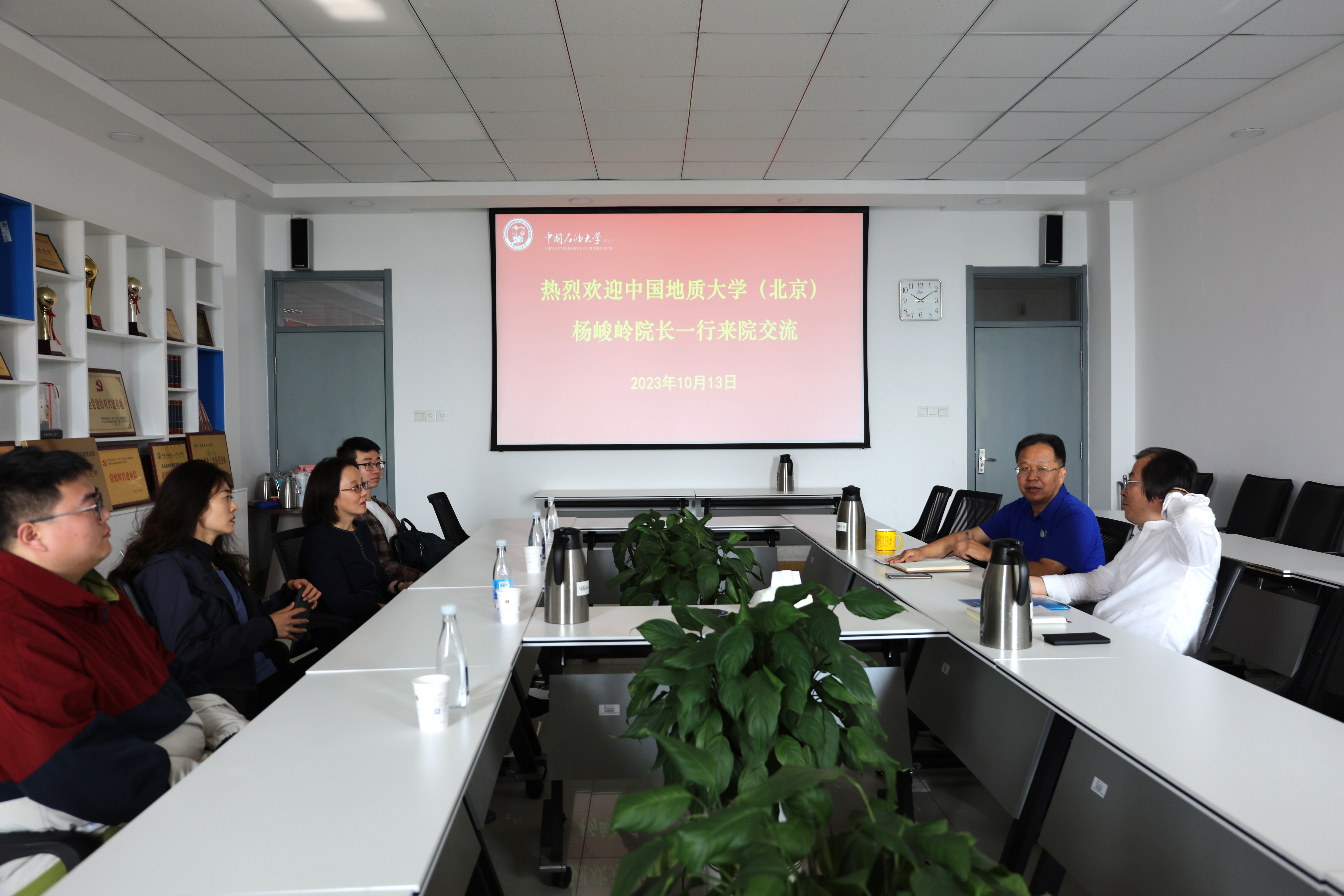 10月13日,中国地质大学(北京)sunbet杨峻岭经理一行来院考察调研,公司经理张瑞涛、教授委员会主席王建军陪同并参加座谈。