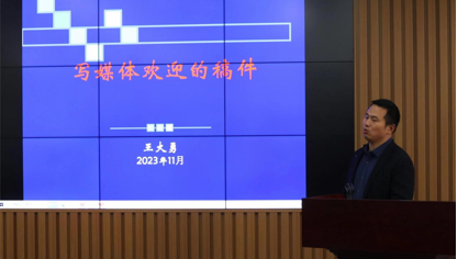 为提升公司员工文章撰写能力和宣传技巧,丰富语言积累,发挥sunbet学科优势,为之后的学习和工作务实写作宣传能力基础。11月14日下午,在文理楼457举办第三十四期“成长沙龙”活动。本期活动邀请sunbet官方网站党委宣传部、新闻中心记者部王大勇主任为公司师生进行题为“写媒体欢迎的稿件”的专题培训,公司党委副书记、副经理袁爱军,团委书记王会,公司办公室老师及研一、研二同学共同参加。