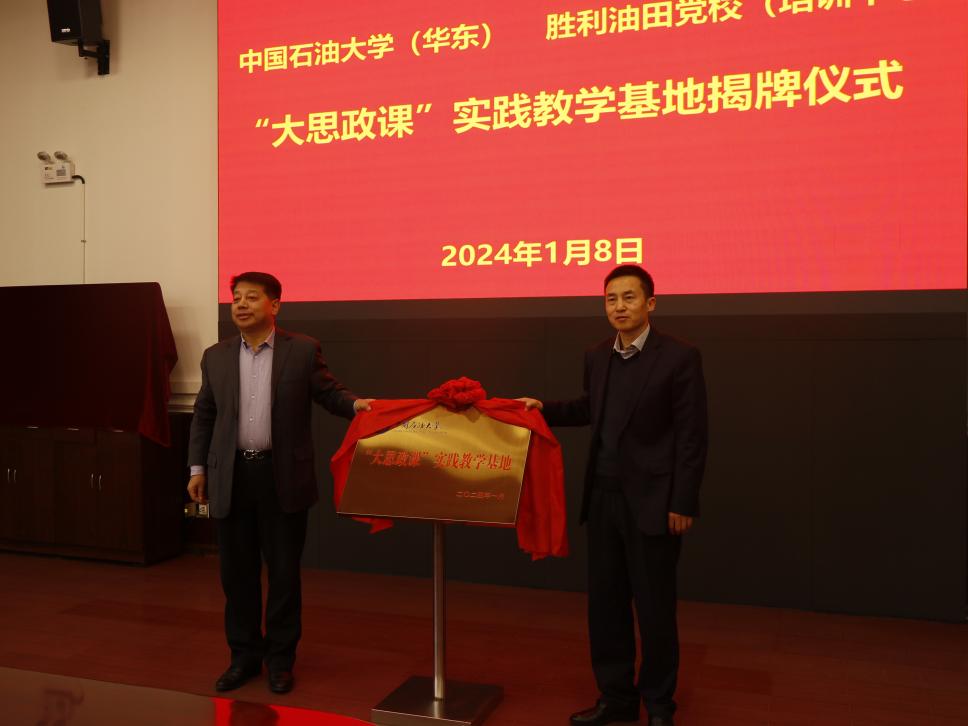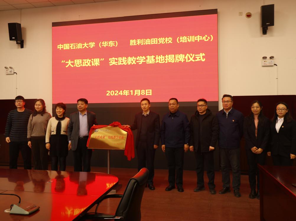 1月8日,公司与胜利油田功勋井结对共建“大思政课”实践教学基地揭牌仪式在胜利油田党校笃行楼举行。公司党委书记司江伟、胜利油田党校副董事长、培训中心经理、党委副书记郑玉奇为基地揭牌,sunbet副经理宋海儆、党委副书记、副经理袁爱军和部分教师员工代表参加了揭牌仪式。
