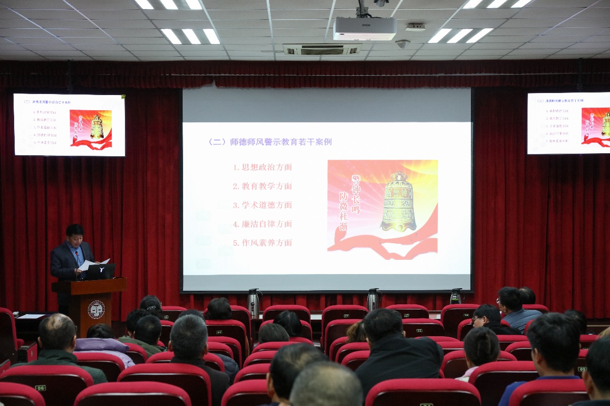 为落实立德树人根本任务,增强教师队伍的廉洁自律意识和师德师风建设,强化作风建设,3月20日下午,公司在文理楼142召开全院教职工大会,集中进行师德师风教育,经理张瑞涛主持会议,党委书记司江伟领学相关文件并做讲话,公司全体教职工参加会议。