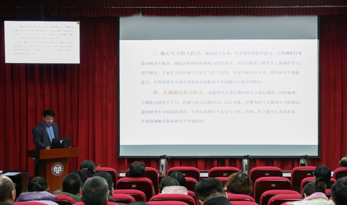 会议开始,司江伟书记与全体老师们一起学习了《新时代高校教师职业行为十项准则》《研究生导师指导行为准则》《新时代高校思想政治理论课教师行为规范和准则》三个文件。结合文件要求,司江伟书记从思想政治、公司产品、学术道德、廉洁自律和作风素养五个方面,剖析了教师师德师风可能存在的隐患和风险,并通报了近年来在国内高校发生的教师师德师风失范若干案例。
