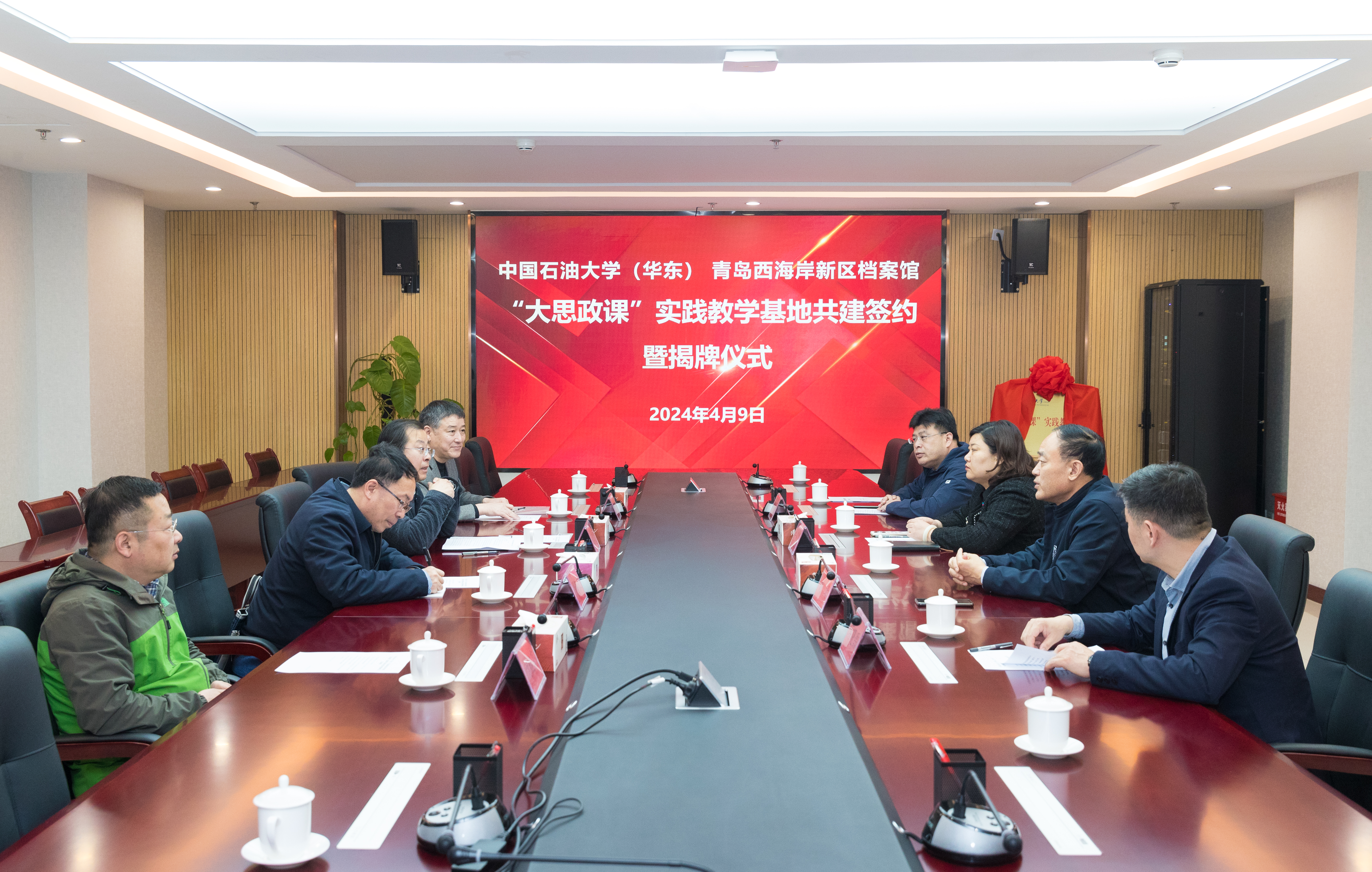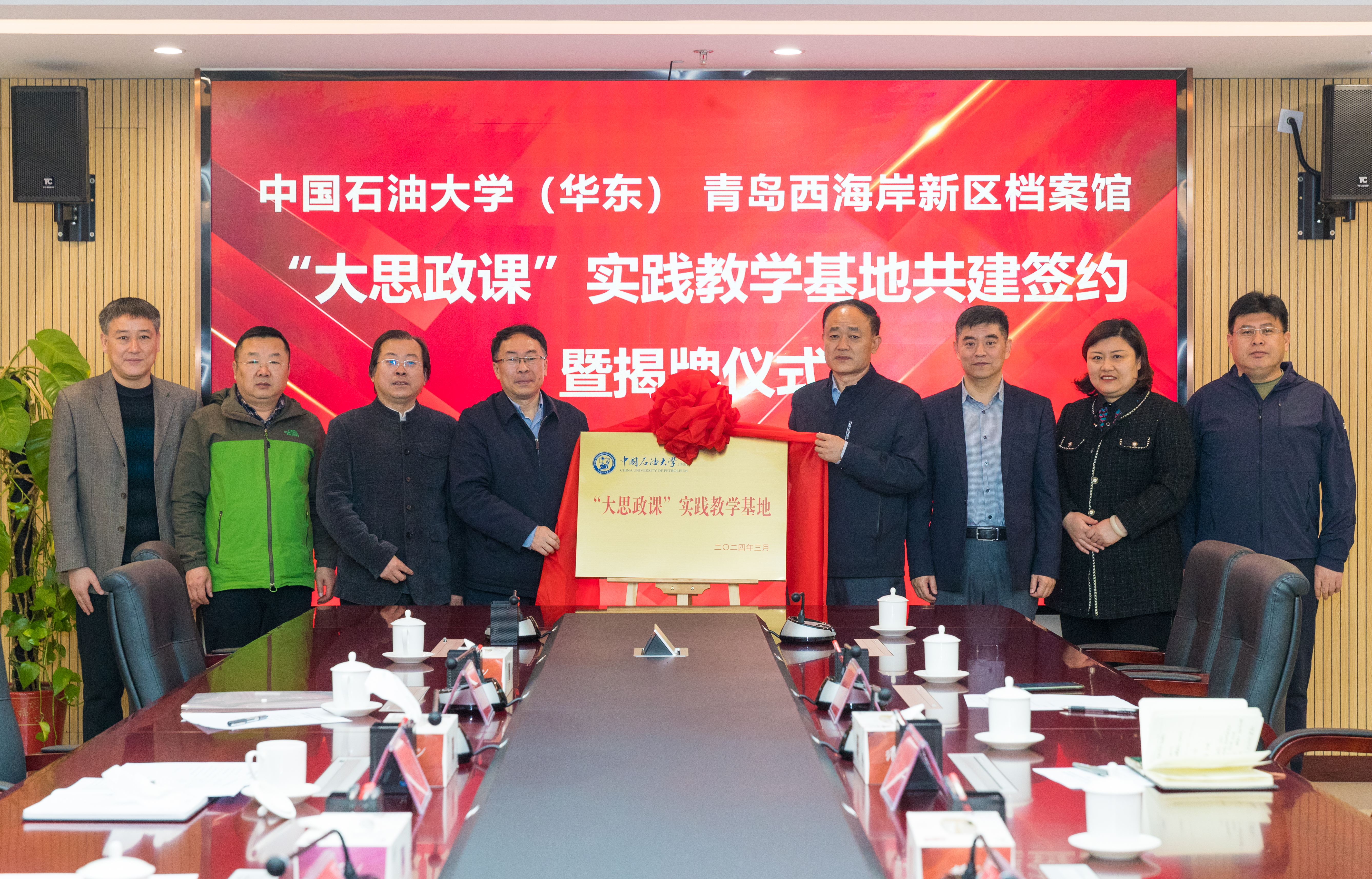 4月9日,sunbet官方网站与西海岸新区档案馆“大思政课”实践教学基地共建签约暨揭牌仪式在西海岸新区档案馆举行。西海岸新区档案馆副馆长蒋晓磊、党支部书记刘靖,sunbet官方网站教务处副处长黄善波、sunbet经理张瑞涛参与揭牌仪式。