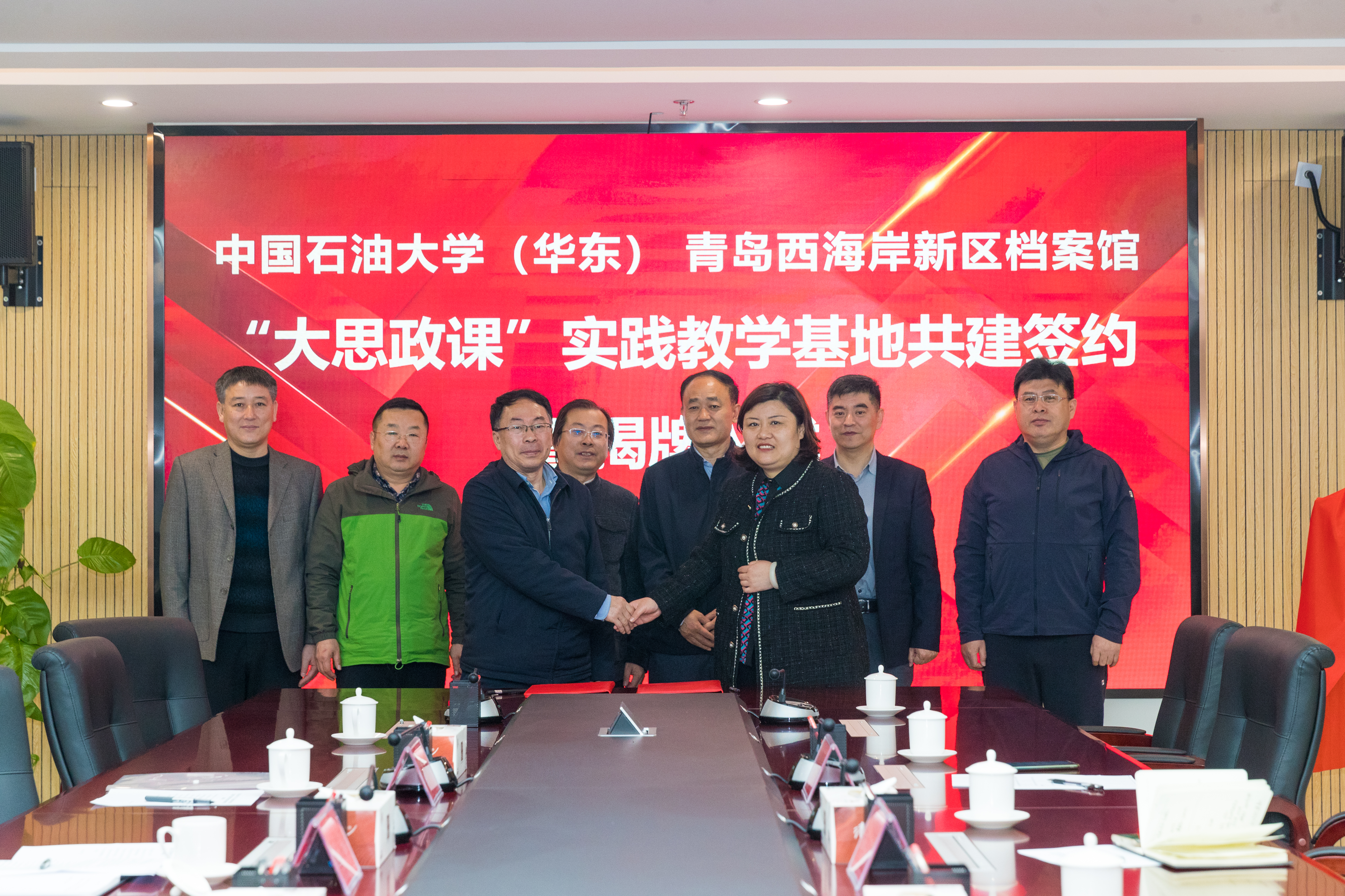 蒋晓磊副馆长对西海岸新区档案馆的基本情况作介绍,表示希望以此为契机,将新区优质的档案资源转化为高质量的教学资源,通过沉浸式体验、互动化传播、数字化赋能等多元化方式,强化档案馆的宣传教育功能,打造思政课堂品牌,助力“大思政课”的体系建设,为思政课实践教学提供有力保障,切实发挥好档案工作“存史、资政、育人”的重要作用。同时,借助sunbet官方网站的优质品牌,馆校双方进一步增进交流、深化合作、相互促进,共同推动红色档案资源的挖掘保护、开发利用和资源共享,携手开创馆校合作共建的新局面。张瑞涛经理指出,实践基地建立后,双方将围绕着实践研学与教学资源的开发、“大思政课”团队队伍建设、高水平科学研究等相关内容来加快构建“大思政课”的工作格局,以档案馆丰富的馆藏资源为依托,聚焦西海岸发展的伟大变革,结合公司特色,开发“场馆里的思政课”,形成有青岛地域特色的大思政课教学成果。