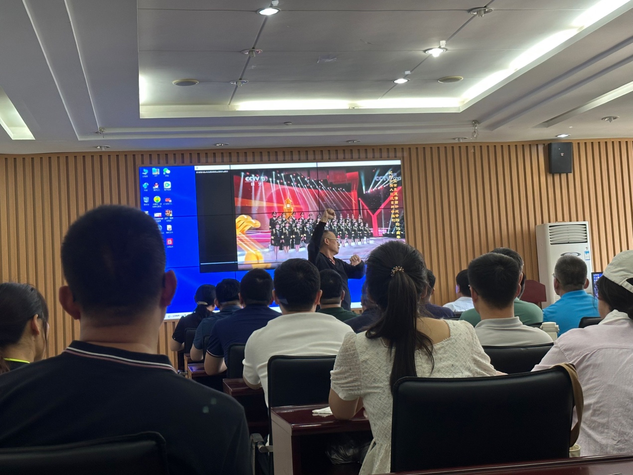 7月3日下午,为参加今年九月底举行的“礼赞新中国,歌颂新时代”教职工合唱比赛,马院工会组织全院教职工进行合唱练习,提前做好热身活动。公司党委书记司江伟亲自带领大家激情高歌《跟着共产党走》。