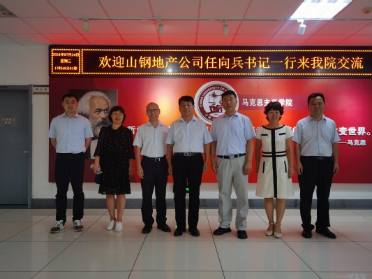 7月24日下午,山钢地产公司党委副书记任向兵一行来公司开展党建联建座谈会,公司党委书记司江伟、副书记兼副经理袁爱军、马克思主义基本原理概论教研室党支部书记薛俊清、团委书记王会参加了此次座谈会。