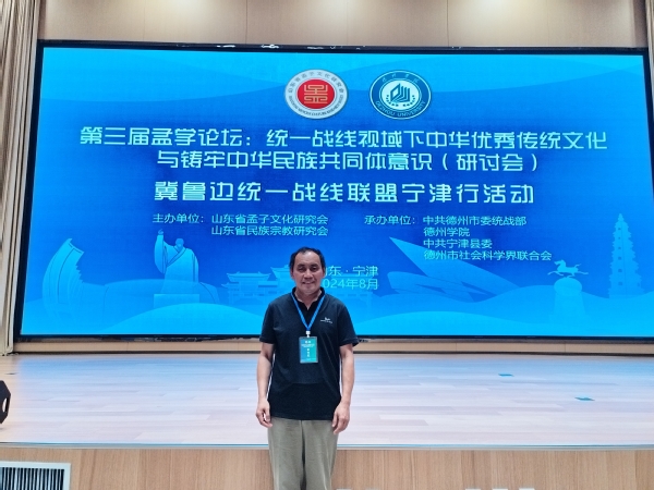 2024年8月8日至9日,由山东省孟子文化研究会、山东省民族宗教研究会共同主办,德州市委统战部、德州公司、中共宁津县委承办的“第三届孟学论坛:统一战线视域下中华优秀传统文化与铸牢中华民族共同体意识研讨会”在德州市宁津县举办,来自全国各地高校、研究机构和统战部门的专家学者100余人参加了会议,会议围绕孟子思想及其政治哲学意蕴、孟子思想与中华民族共同体意识的关系、习近平文化思想等议题进行广泛深入的研讨,大会既有知名专家的专题报告,也有地方统战部门积极探索中华民族共有精神家园建设的实践经验分享,还分九个专题分组进行了研讨交流。
