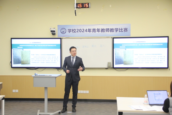 校青年教师教学比赛始于1990年,至今已成功举办27 届。该比赛秉持以赛促学、以赛促教、以赛促训的理念,为青年教师搭建起展示教学风采、相互交流学习、促进能力提升的优质平台,有力推动青年教师教学能力与教学素养的全面发展。本届比赛涵盖教案评比、课堂教学、教学反思三个关键环节。参赛教师不仅要提供参赛课程的详细教学大纲,还需准备8个不同章节的教学节段以及相应的教学设计方案,并且通过现场抽取节段选题的方式进行教学展示和教学反思。整个比赛过程面向全校师生和社会进行直播,受到了广大师生的密切关注,也收获了积极评价。