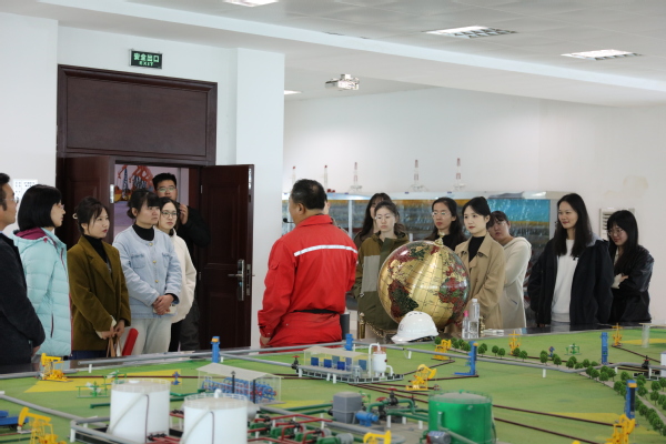 本次研学活动共安排5次现场教学和1次专题讲座。在胜利油田优良传统展厅,公司师生通过“历史不能忘记”“我为祖国献石油”“从胜利走向胜利”三个篇章详细了解了胜利油田60多年来战天斗地、负重奋进的光辉岁月和发展历程,深刻认识到石油精神石化传统始终是胜利人薪火相传的历史根脉、砥砺奋进的精神源泉。在油田勘探开发沙盘室,公司师生详细了解了石油的形成、勘探与开发过程,以及油田的技术革新与生产流程。通过胜利油田专家的讲解,师生们不仅对石油工业有了更全面的认知,也切身体会到技术创新背后的工匠精神。在胜利油田红色教育基地,师生们先后参观了华北油区第一口发现井——华八井、胜利油田开发初期被称为“九二三厂”的命名井——营二井,以及我国第一口原油日产过千吨的油井——坨十一井。通过观察工作运行中的磕头机、聆听油田专家绘声绘色的讲解,师生们深入了解了中国石油工业从无到有的辉煌历程,不仅对石油工业的技术成就有了更加具体的感知,也更加深刻地理解了“从实践中来,到实践中去”的理论精髓。作为此次研学活动的重要环节之一,胜利油田党校教师孙汝仪为公司师生带来了题为“端牢能源饭碗、贡献石化力量”的专题讲座。孙老师结合习近平总书记关于能源领域的重要论述及其视察胜利油田、九江石化的重要指示精神,深入阐述了新时代能源安全新战略的核心内容。他强调,要积极践行“四个革命”、加强“一个合作”,推动我国能源工业实现更高质量的发展,牢牢把能源饭碗和制造业饭碗端在自己手里。