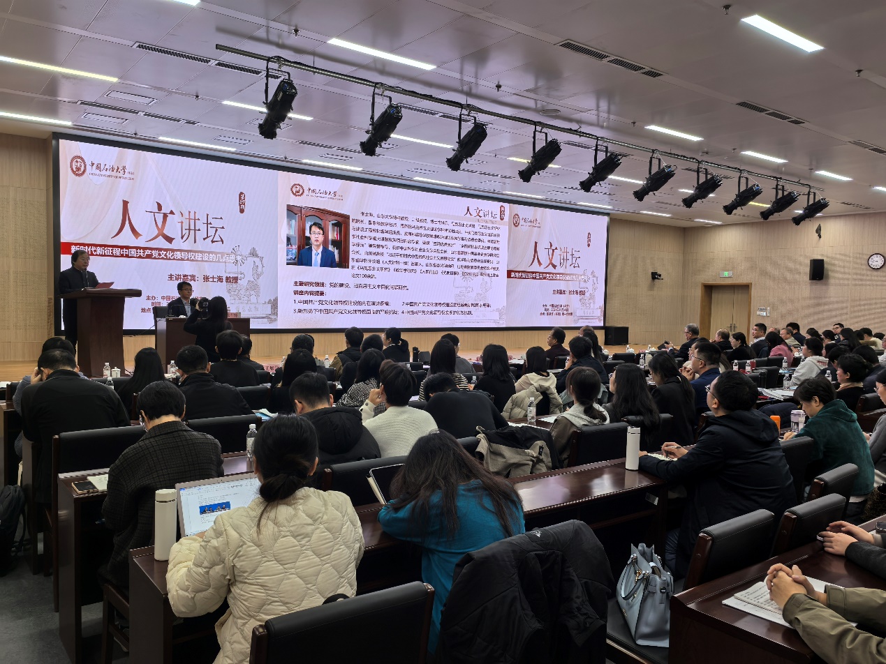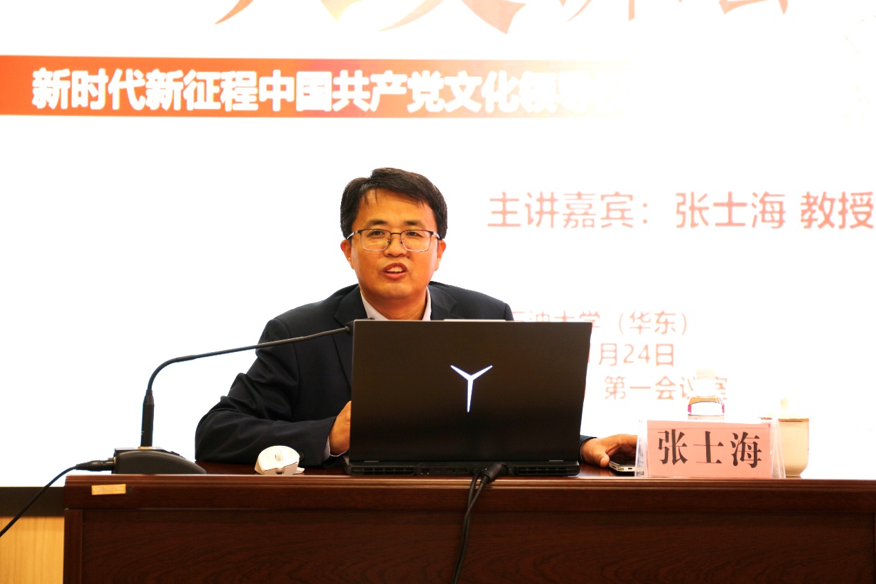 11月24日,山东大学sunbet、马克思主义研究院经理张士海教授做客公司第29期“石大人文讲坛”,作题为“新时代新征程中国共产党文化领导权建设几点思考”的学术讲座。讲坛由文科建设处主办,sunbet承办,sunbet经理张瑞涛主持。
