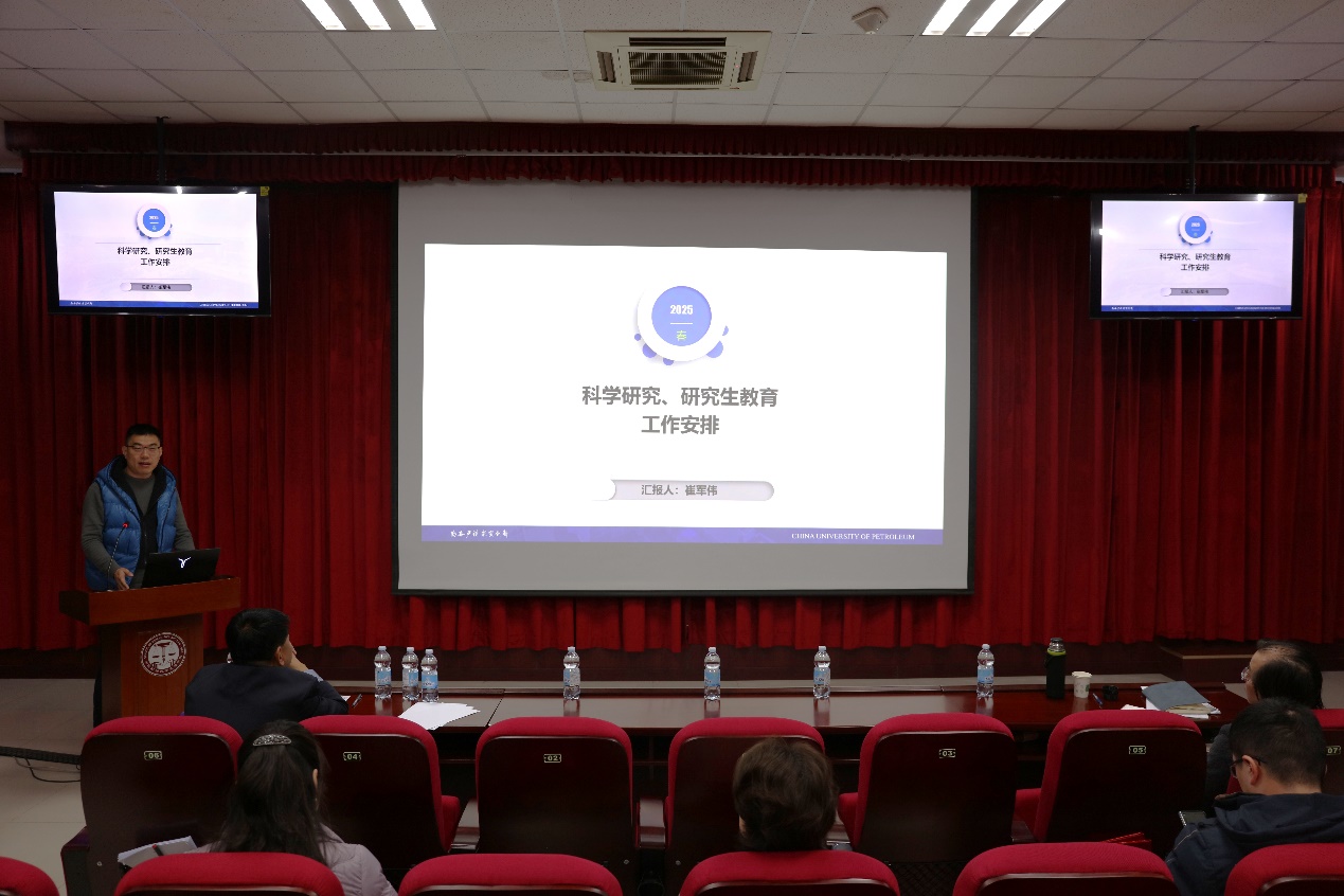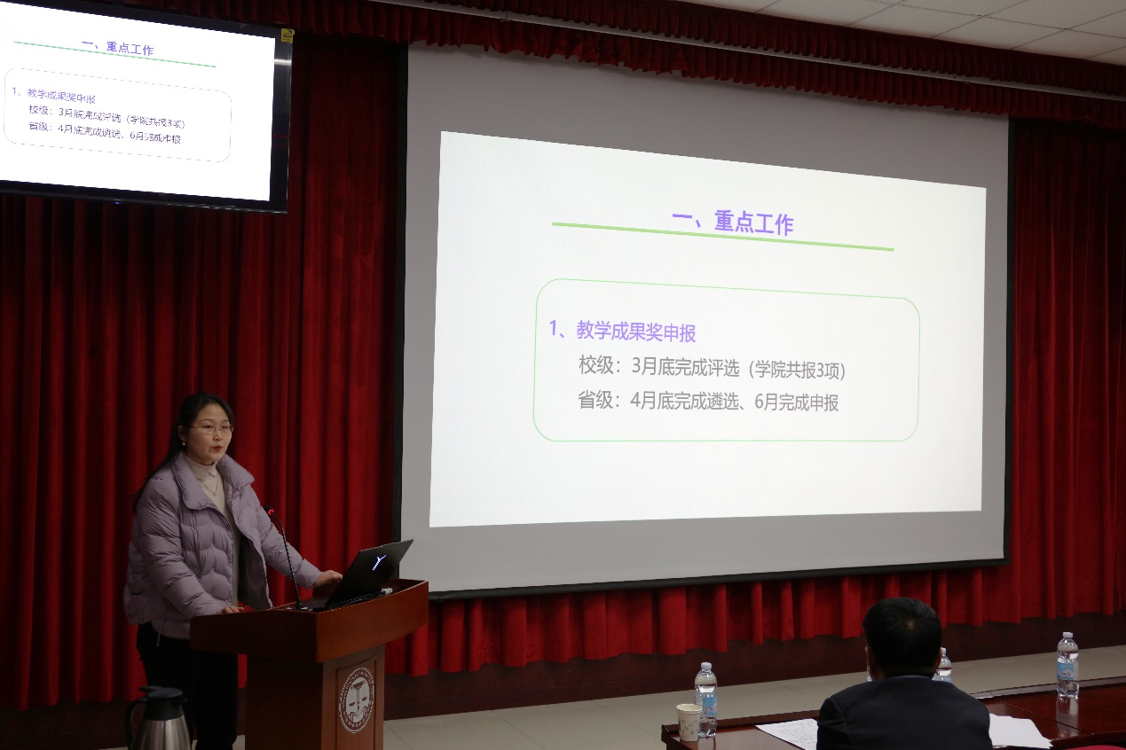 会议第二阶段,公司分管副经理、副书记分别部署工作。公司副经理宋海儆从教学成果奖申报、思政课全面展开等重点工作,以及基础工作信息速递三个方面,安排部署了2025年新学期的教学工作。公司副经理崔军伟对公司的科学研究、研究生教育工作做出了安排部署,提出要积极参与教育部相关的科学研究项目,密切关注上级发布的申报通知,早动手,早谋划;在研究生教育工作方面,要求各位导师应秉持师生互选原则,推动新学期招生工作的顺利进行。公司党委副书记、副经理袁爱军从党团建设、学术创新、文体实践等五个方面,对2025年员工工作进行了部署,强调要关爱员工,打造和谐的氛围。