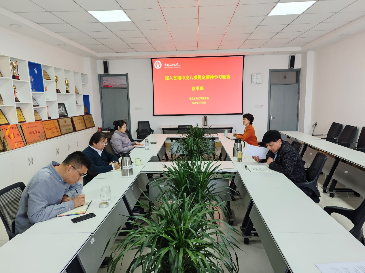 3月31日,开展读书班第二次集体学习,党委副书记、副经理袁爱军领学《中共中央八项规定》及《中央八项规定实施细则》全文。