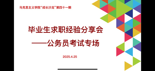 为进一步提升毕业生就业质量,帮助员工科学规划职业生涯,4月25日上午,公司通过腾讯会议平台成功举办第四十一期成长沙龙活动,主题为“毕业生求职经验分享会——考公专场”。本次活动特邀2022级硕士研究生于飞、柏悦、王景然担任主讲人,由王会老师主持,2023级、2024级全体硕士研究生积极参与。