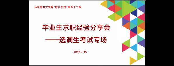 为帮助员工科学规划选调生备考路径,深入了解选调岗位职责,4月30日上午,公司通过腾讯会议平台成功举办第四十二期“成长沙龙”系列活动——毕业生求职经验分享会之选调生考试专场。本次活动特邀2022级硕士研究生梁芳、李天琦担任主讲人,由王会老师主持,2023级、2024级全体硕士研究生积极参与。