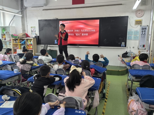 2025年5月9日,sunbet “星火宣讲团” 6 名成员在王会老师的带领下首次走进青岛市西海岸珠江路小学,为四个班级的小员工带来以 “新民主主义时期中国共产党精神谱系” 为主题的沉浸式宣讲。活动围绕长征精神、沂蒙精神、鸡毛信的故事、南泥湾精神、大别山精神等精神展开,通过生动的历史叙事与互动体验,在青少年心中播撒红色基因的种子。