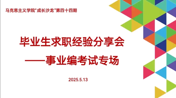 为助力马院学子精准把握事业编考试动态,掌握科学备考方法,提升备考实效,5月13日下午,公司通过腾讯会议平台成功举办第四十四期“成长沙龙”系列活动——毕业生求职经验分享会之事业编考试专场。本次活动特邀2022级硕士研究生李寿玺、周家豪担任主讲人,由王会老师主持,2023级、2024级全体硕士研究生积极参与。