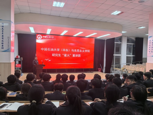 宣讲团成员充分发挥专业优势,构建起立体化的理论宣讲矩阵:李海存、柴晓宁聚焦理论根基,深入浅出解析马克思主义基本原理的核心要义;李子怡、邱纪涵通过“党史学习教育专题”,以沂蒙精神的时代光芒和三反五反运动的历史启示,筑牢青年听党话、跟党走的思想根基;安梓恺、李涵雯紧扣时代命题,系统阐释党的二十大精神中的人才强国战略与中国式现代化宏伟蓝图;高智恒博士以“青春有为,责任在肩”激发团学骨干的使命情怀;张坤宇直面青年困惑,围绕“年轻的你是否依然相信努力的意义”,以哲学思辨剖析“内卷”本质,重塑奋斗价值坐标。五期宣讲主题层层递进,形成从理论认知到价值塑造的完整育人链条。