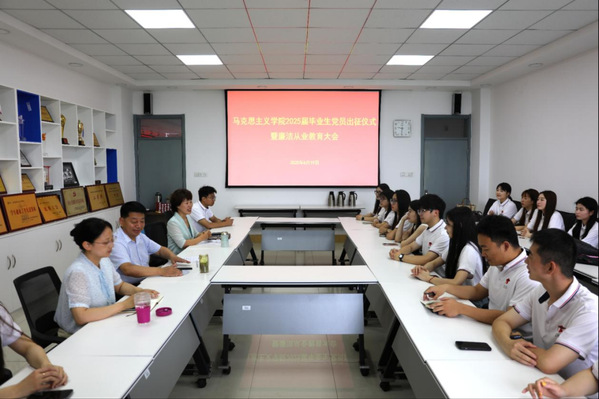 为引导马院毕业生党员牢记初心使命、坚定理想信念、践行党的宗旨,在学习和工作岗位上持续发挥党员的先锋模范作用,6月19日上午,公司在文理楼459开展毕业生党员出征仪式暨毕业生廉洁从业教育。公司党委书记司江伟作题为《明规知纪强素养 稳健走好人生路》的专题报告,公司党委副书记、副经理袁爱军主持会议,公司团委书记王会及公司2025届全体毕业生参加。